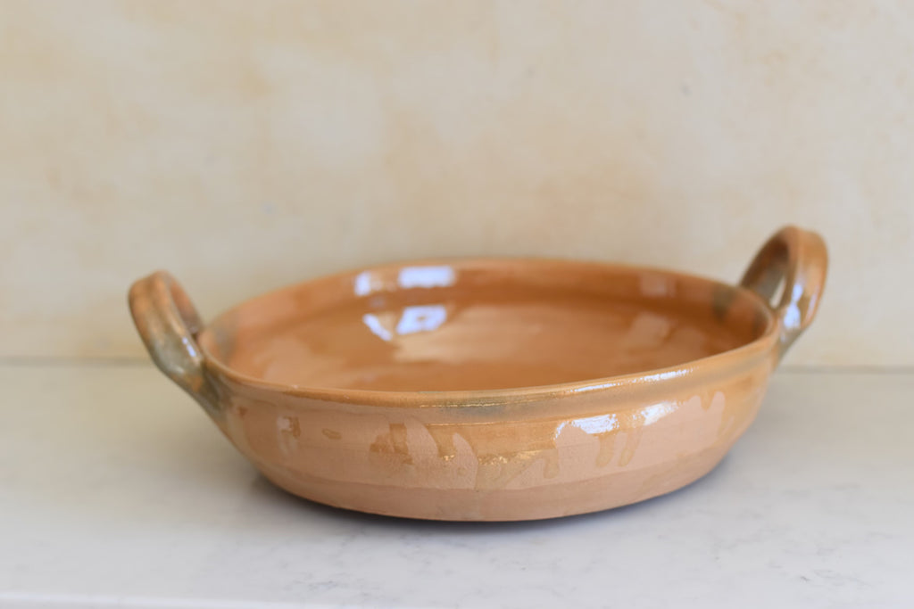 This beautiful 11 inch wide piece has many possibilities and use. Cook your favorite dish on stove top or use as a serving dish.