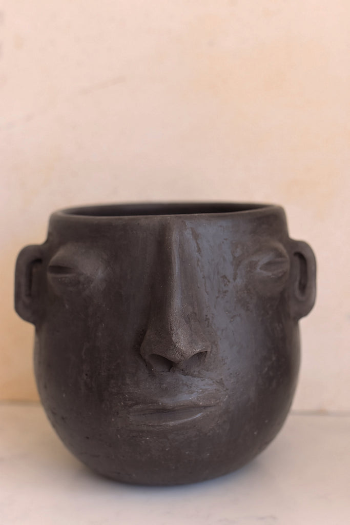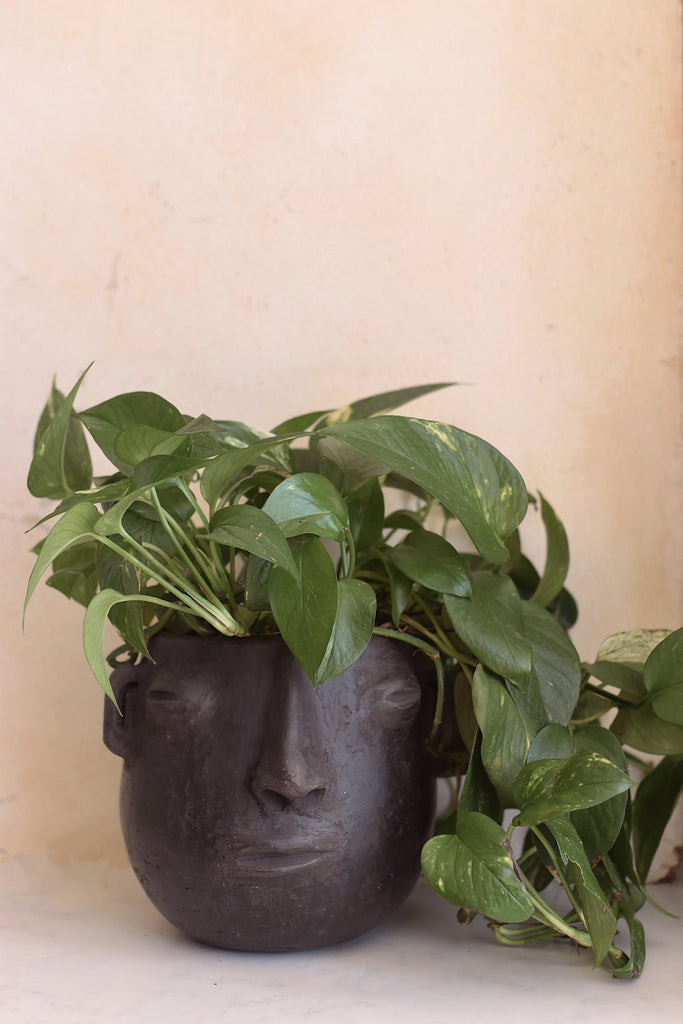 LARGE BLK POT HEAD PLANTER