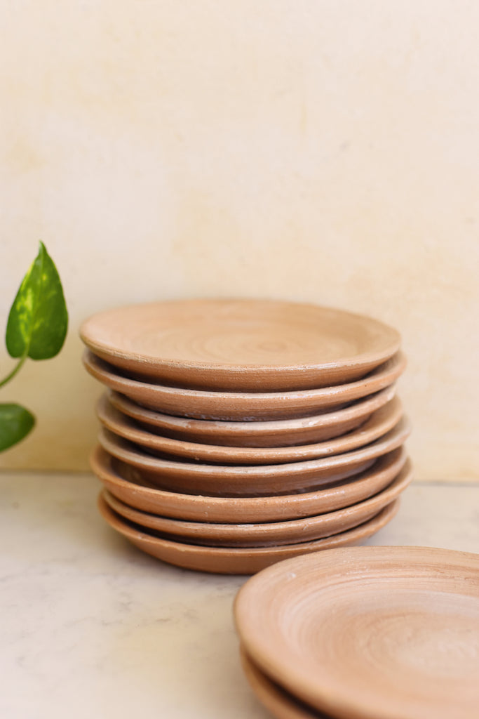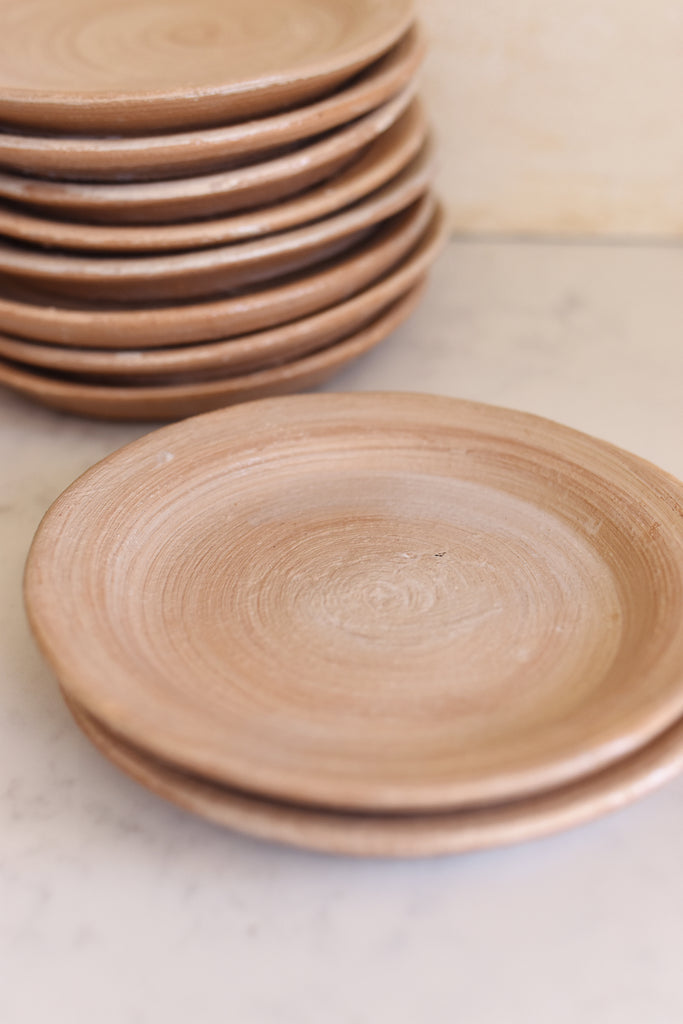 5 inch round appetizer plate with a beautiful whitewash detail.