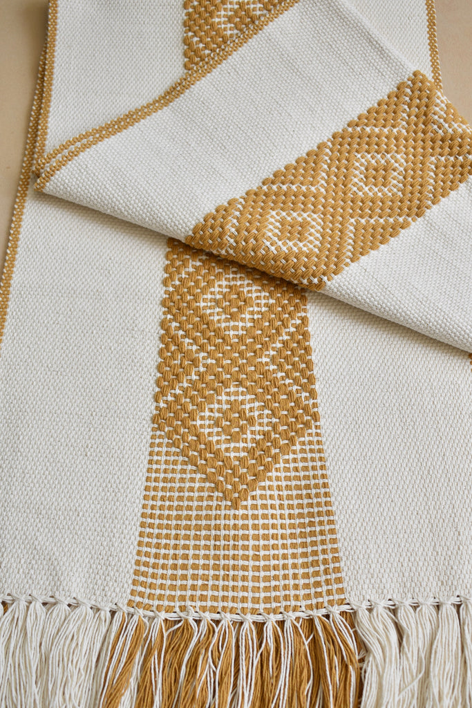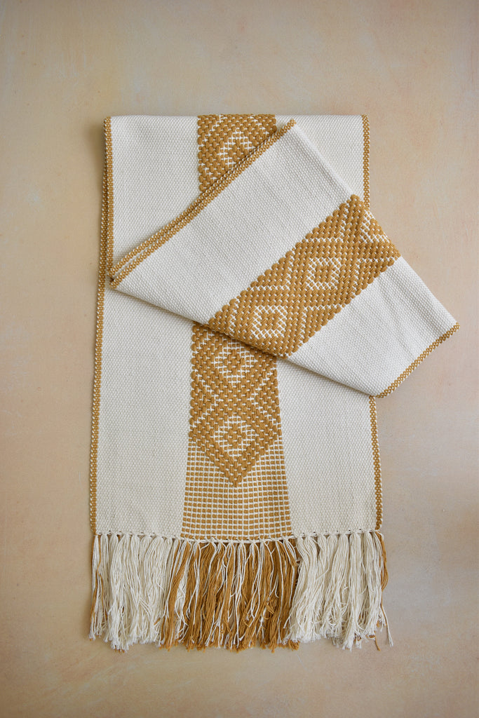 CREAM WITH MUSTARD LARGE DIAMOND CENTER AND EDGING TABLE RUNNER