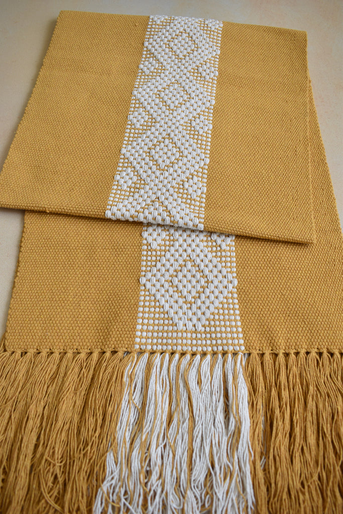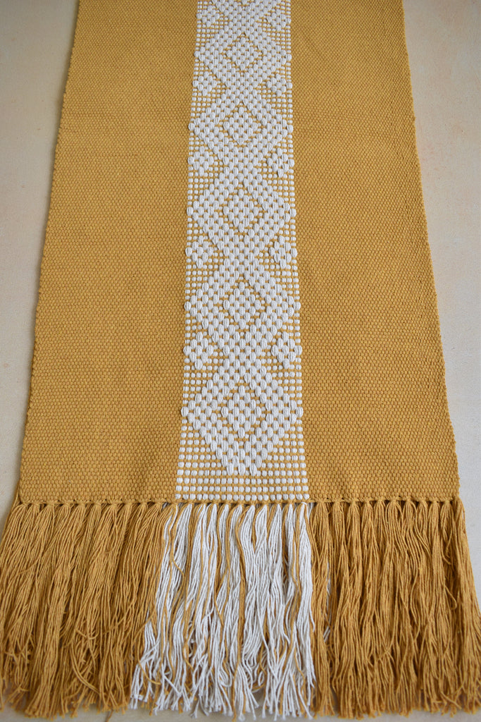 72” X 13” MUSTARD AND CREAM TABLE RUNNER