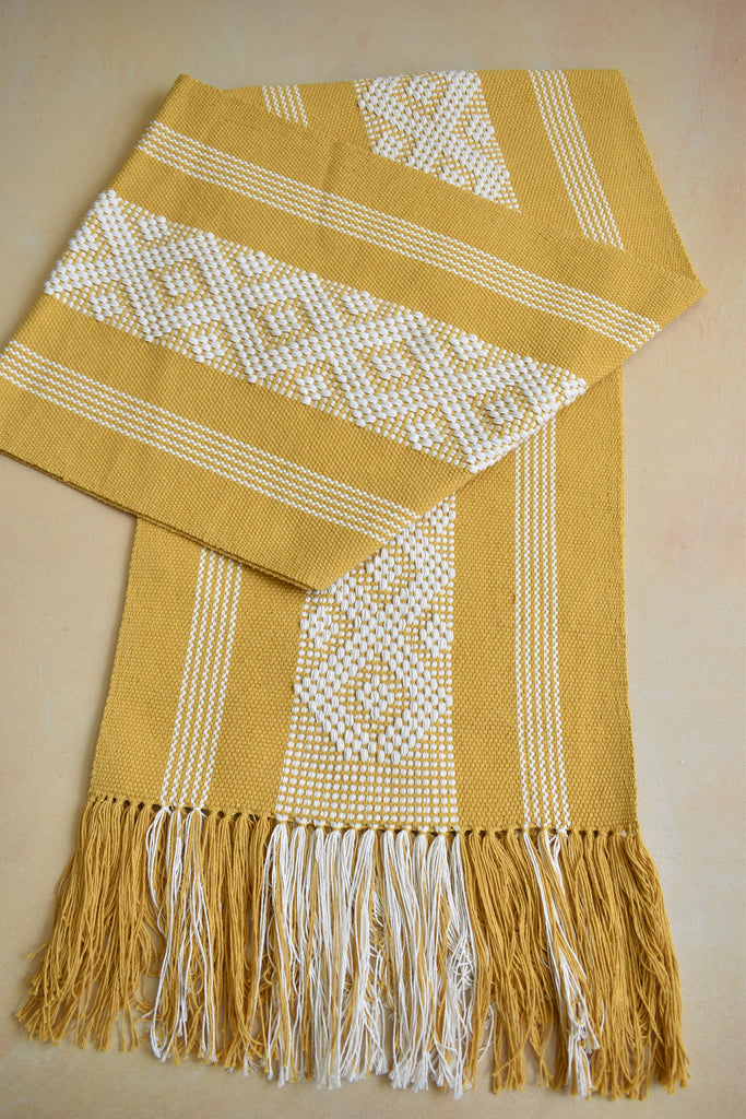 112” X 14” MUSTARD BEAUTIFULLY DETAILED TABLE RUNNER